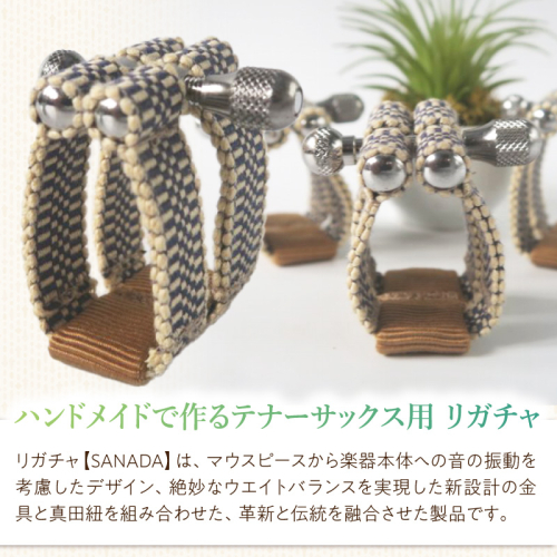 リガチャ【SANADA】は、マウスピースから楽器本体への音の振動を考慮したデザイン、絶妙なウエイトバランスを実現した新設計の金具と真田紐を組み合わせた、革新と伝統を融合させた製品です。