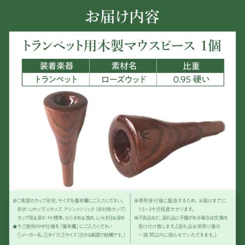 - 木製マウスピース(トランペット用) ローズウッド[195S01]