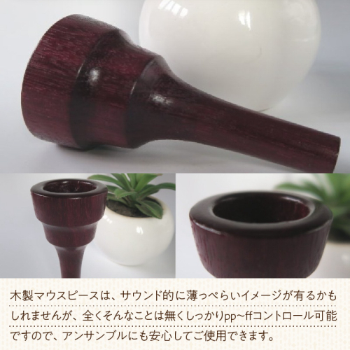 木製マウスピースは、サウンド的に薄っぺらいイメージが有るかもしれませんが、全くそんなことは無くしっかりpp~ffコントロール可能ですので、アンサンブルにも安心してご使用できます。