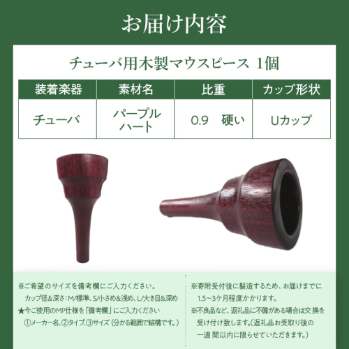 木製マウスピース(チューバ用) パープルハート[195S04] 2324741 - 愛知県小牧市