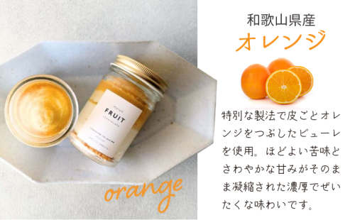 ・和歌山県産オレンジ:生クリーム(生乳(北海道産))、オレンジピューレ、クリームチーズ、砂糖(粗糖)、ヨーグルト、玄米粉、米油、レモン果汁、牛乳、ゼラチン、食塩、(一部に乳成分・オレンジ・ゼラチンを含む)