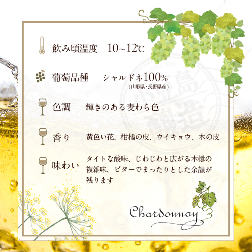 ぶどう品種:シャルドネ100%(山形県・長野県産)