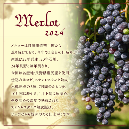 2024年のメルローは、幅広いお食事に寄り添うフードフレンドリーなミディアムボディの赤ワインです。