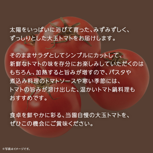 食卓を鮮やかに彩る、当園自慢の大玉トマトを、ぜひこの機会にご賞味ください。