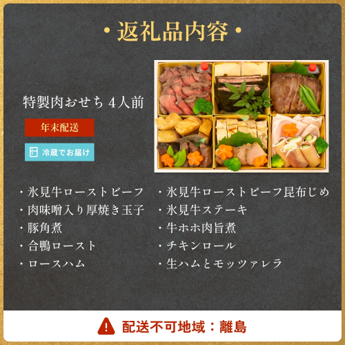 - 【年末発送】特製 肉おせち 4人前 牛肉 おせち 年末発送 惣菜 富山県 氷見市