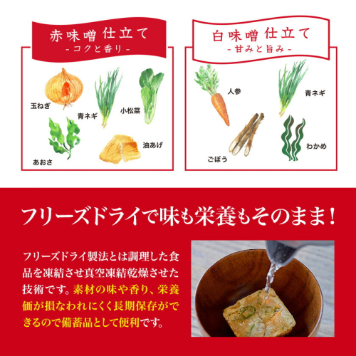 - フリーズドライ 味噌汁 国産具材の赤白お味噌汁 選べる 20食or 24食 or 30食 or 40食 株式会社味季屋《30日以内に出荷予定(土日祝除く)》 和歌山県 日高町 みそ 赤味噌 白みそ インスタント あごだし かつおだし