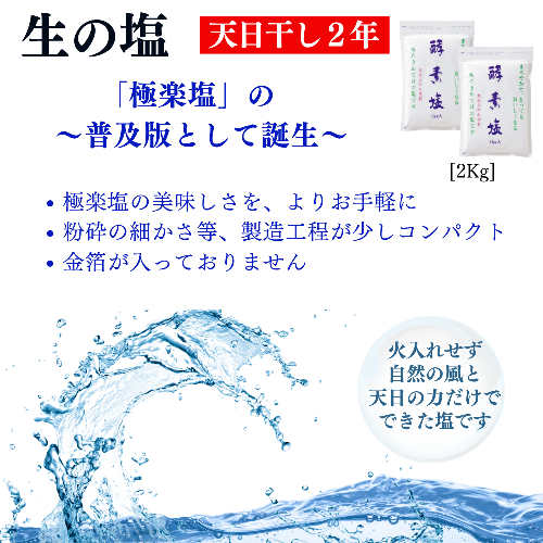 【どんな塩?極楽塩の普及版 天日干し2年!火入れしない生の塩】