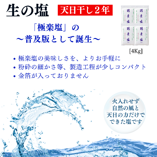 - 極楽塩の普及版 天日干し2年 火入れしない生の塩 「酵素塩」 1kg×4袋 貝カルシウム ソマチット入り 自然の力をもっと手軽に こだわりの製法 塩 食塩 食卓塩 海塩 調味料 ミネラル ソルト