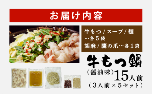 牛もつ鍋 醤油味 15人前セット(3人前×5セット) CF13
