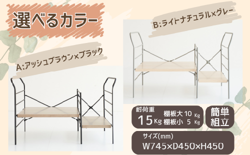耐荷重 15Kg(棚板大:10Kg、棚板小:5Kg)