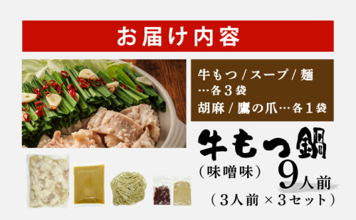 - 牛もつ鍋 味噌味 9人前セット(3人前×3セット) CF16