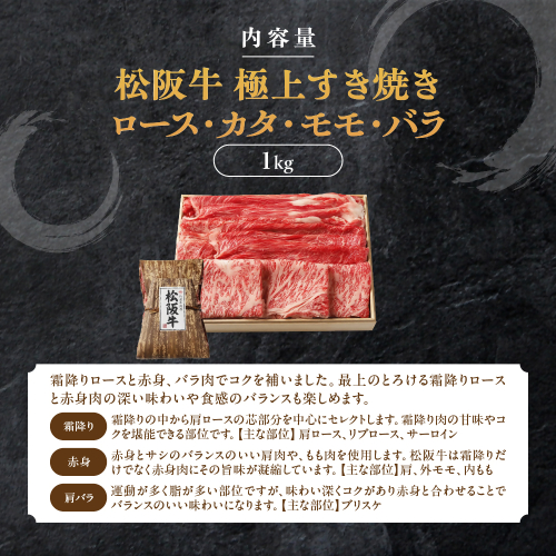 - 松阪牛 すき焼き 1kg (ロース・カタ・モモ・バラ)