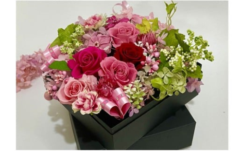 - プリザーブドBOXフラワー 有田焼チャーム付き 【フラワースポットベルローズ】有田焼 プリザーブドフラワー ギフト プレゼント 45000円 A45-362