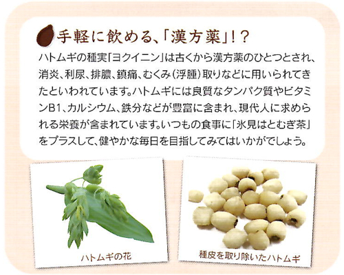 はとむぎ(氷見産)、緑茶、ビタミンC