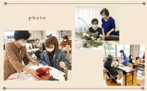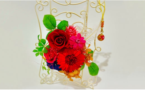 お花と一緒に赤とゴールドの有田焼チャームをポイントに入れています。一緒にお楽しみ下さい。