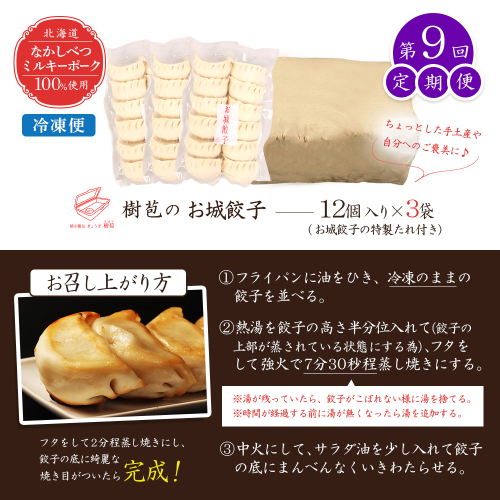 - 【定期便:9回】【なかしべつミルキーポーク100%使用】 樹苞 お城餃子36個(約9人前)【53017】