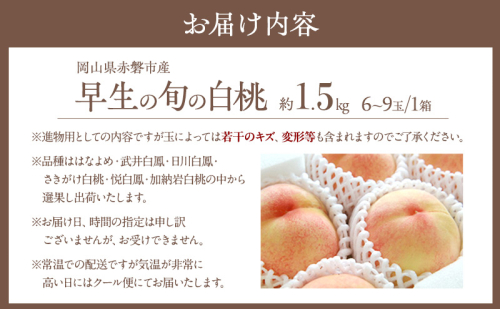 桃 2026年 先行予約 早生の旬の 白桃 約1.5kg 6~9玉 進物用 もも モモ フルーツ 果物 岡山 赤磐市産 農マル園芸 あかいわ農園
