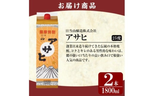 K-652-A 鹿児島本格芋焼酎「アサヒ」1800ml 紙パック入り(計2本)【赤塚屋百貨店】霧島市 いも焼酎 紙パック 酒 老舗酒屋 厳選 地酒 日当山醸造 2330648 - 鹿児島県霧島市