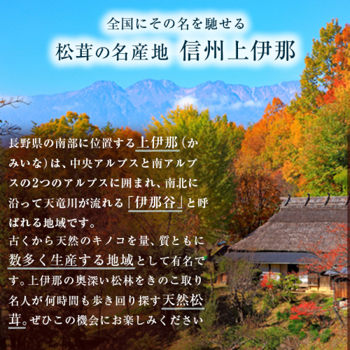 味・香りともに高級品種の信州伊那谷産「採れたて松茸」を直送する希少価値の高い逸品です。