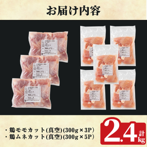 • K-615-A 鹿児島県産鶏モモ・ムネセット(計2.4kg)【ハピネス】霧島市 肉 鶏肉 鶏 精肉 鹿児島県産 モモ ムネ カットセット 小分け 食べ比べ 冷凍
