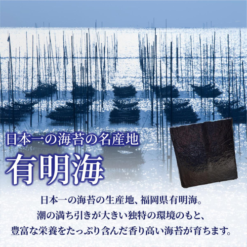 本品は、その有明海産の海苔を厳選し、熟練の職人が心を込めて焼き上げた「焼きのり」です。
