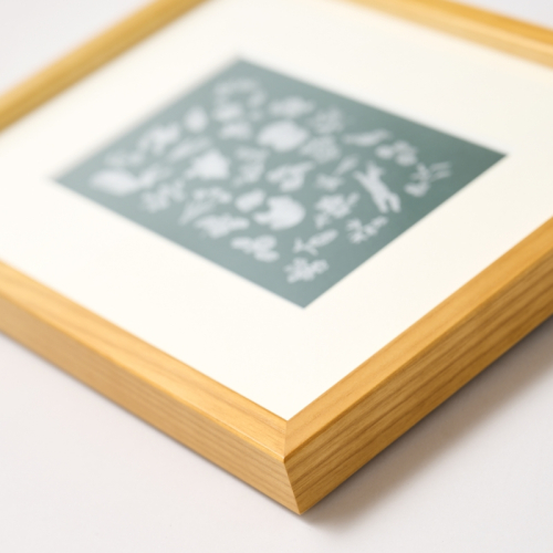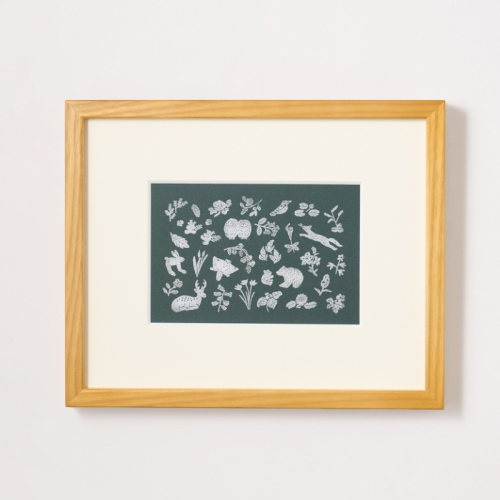 釧路町在住の作家、磯優子による「釧路町の動植物」をモチーフにした活版印刷作品の額装ポストカードです。