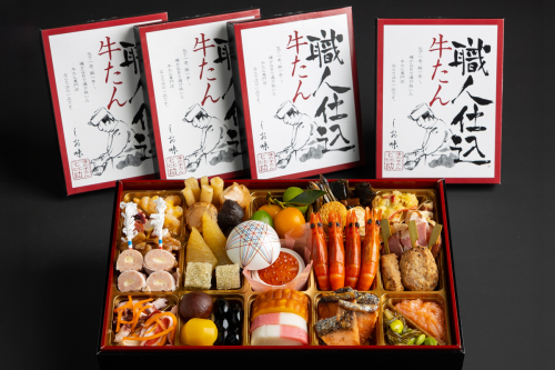 喜助のおせちは「職人仕込牛たんしお味」たっぷり4箱と本格和風おせち35品がセットになったお得なセットです。