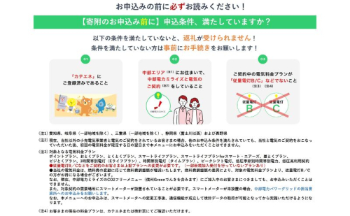 なお、返礼は中部電力ミライズを通じて行われるため、中部電力ミライズのWEBサイトでお手続きが必要です。