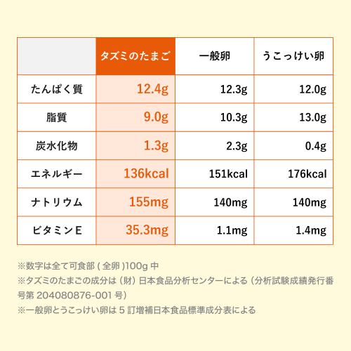 特別な天然飼料で育てた鶏のため、ビタミン・ミネラルたっぷり濃厚卵。