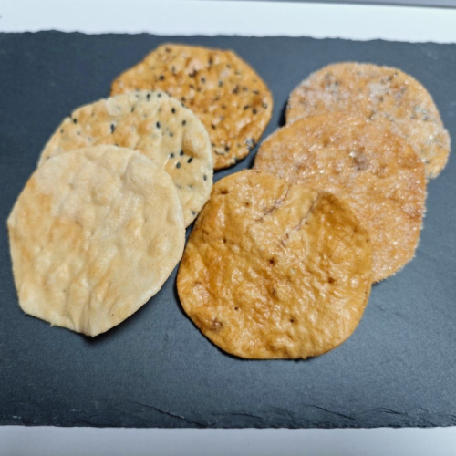 内容例:手焼き煎餅×10(味おかませ)、クッキー×5、フィナンシェ×5