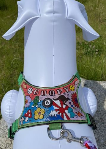 焼津市から見える雪を被った富士山デザインは必ず入ります。その他のデザインは、ワンちゃんのイメージでお色やデザインをお作りしますので、届いてからのお楽しみとなります。