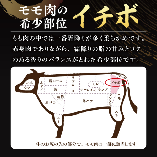イチボとは、お尻の先にあるもも肉の一部で、ランプの隣に位置しています。