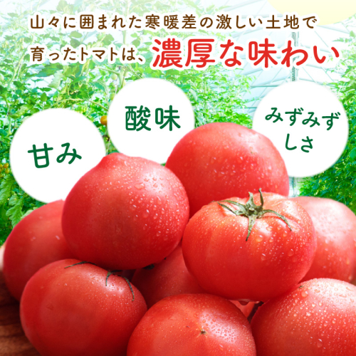 山々に囲まれた寒暖差の激しい土地で育ったトマトは、濃厚な味わいが特徴です。