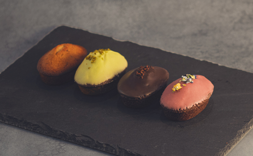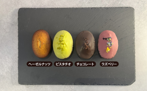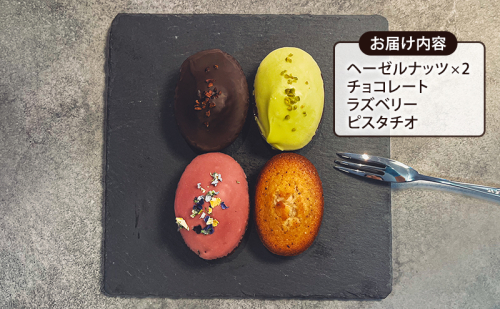 - フィナンシェ「ヘーゼルナッツ、チョコレート、ラズベリー、ピスタチオ」