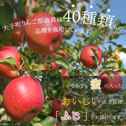 大子町りんご部会員は40種類もの品種を栽培しています。なかでも蜜の入ったおいしい主力品種「ふじ」をお届けします。
