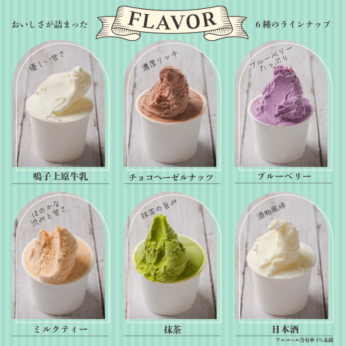 地元のわずか6戸の酪農農家が生産する鳴子上原酪農牛乳を贅沢に使い、自社農園で育てた作物や地酒、全国食べ歩きが趣味のオーナーが美味しいと思うものを集めて濃厚なジェラートを作りました。