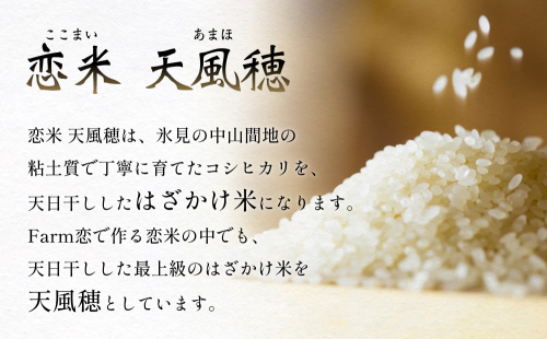Farm恋で作る恋米の中でも、天日干しした最上級のはざかけ米を天風穂(あまほ)としています。