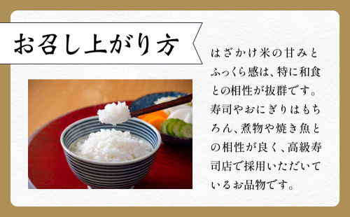 寿司やおにぎりはもちろん、煮物や焼き魚との相性が良く、高級寿司店で採用いただいているお品物です。