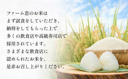 ファーム恋のお米はまず試食をしていただき、納得をしてもらった上で多くの飲食店や高級寿司店で採用されています。