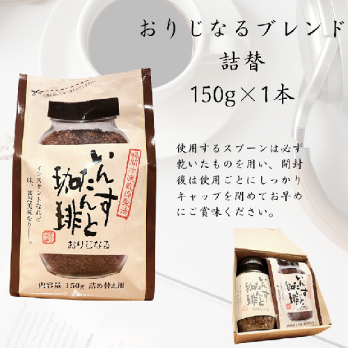 当店自慢の大人気商品、いんすたんと珈琲『おりじなる』を大瓶と詰替えのセットにてご提供いたします。