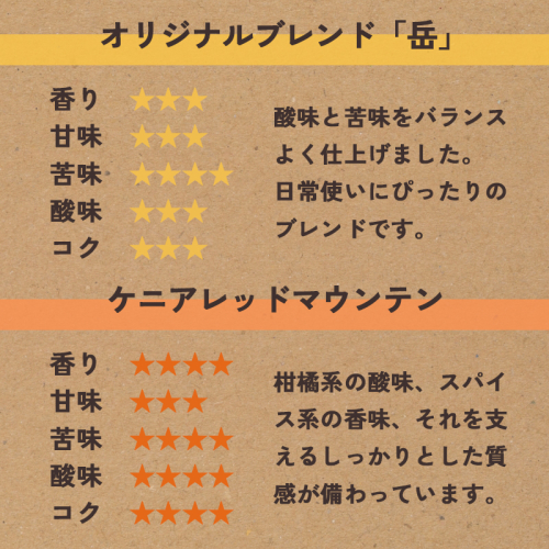 (オリジナルブレンド「岳 」 200g、 ケニアレッドマウンテン200g)