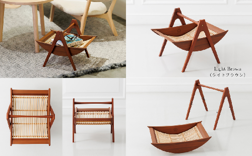 1963年に発売されたマガジンラックを、当時の設計図を忠実に再現して復刻したモデル。現代の暮らしに馴染むよう、ナチュラル、ライトブラウン、ダークブラウンの3カラー展開。