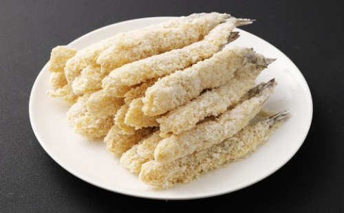 バナメイエビ(タイ産)、パン粉、小麦粉、卵、でん粉、食塩/膨張剤、着色料(カロチン)、PH調整剤(一部にえび・小麦・卵を含む)