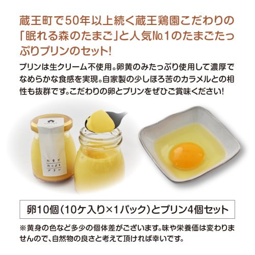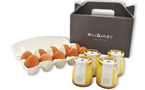 蔵王鶏園自慢の眠れる森のたまごと、当店人気No.1のたまごたっぷりプリンをセットにしました。
