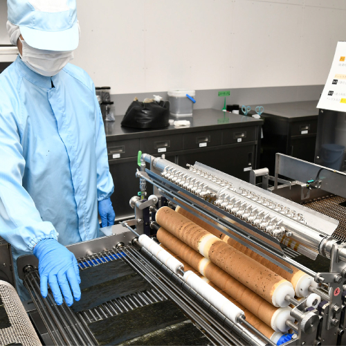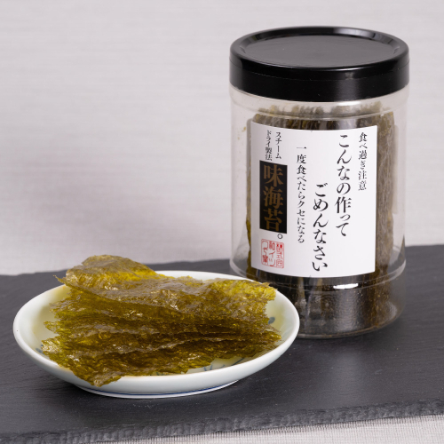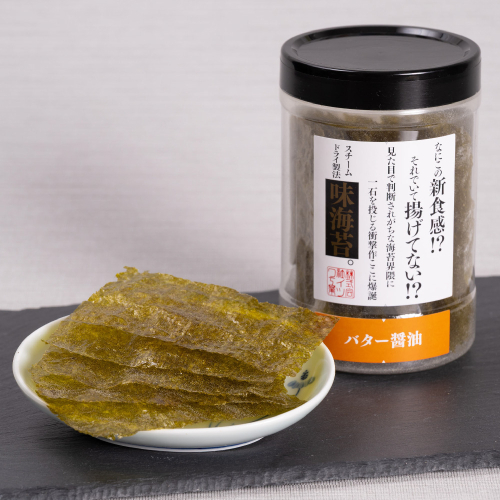 海苔の細胞を壊すために、スチームを使って高温多湿で乾かし、旨味を表面に引き出すという普通の海苔製法とは真逆の『スチーム製法』で作っています。