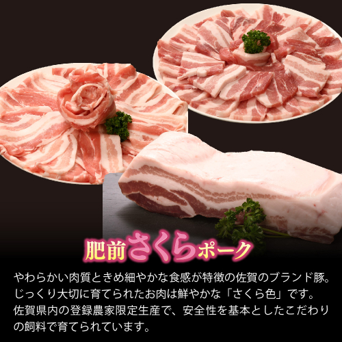 - 【3カ月定期便】肥前さくらポーク 焼肉・しゃぶしゃぶ・ブロック 計1.95kg【豚肉 やわらかい 甘み 小分け スライス ブロック ブランド肉 佐賀県 美味しい キメ細かい】(H123116)