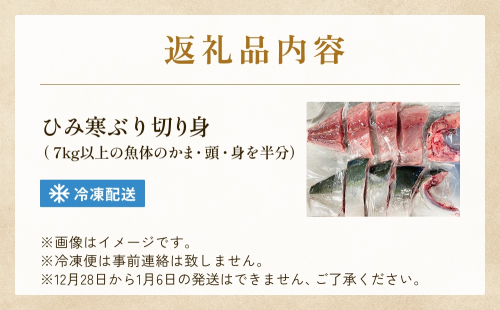 - ひみ寒ぶり切り身(7kg以上の魚体のかま・頭・身を半分)