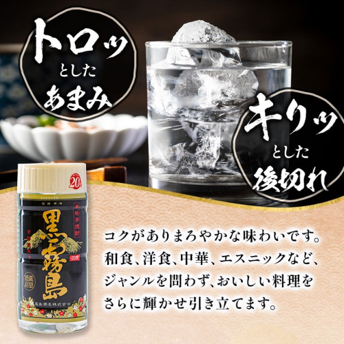 霧島酒造の本格芋焼酎「黒霧島」は、トロッとしたあまみと、キリッとした後切れが特長。コクがありまろやかな味わいです。