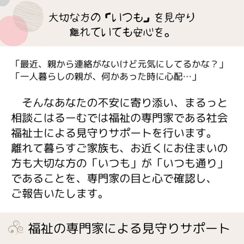 ◇見守りサービスに関する問い合わせ:社会福祉士事務所 まるっと相談こはるーむ
