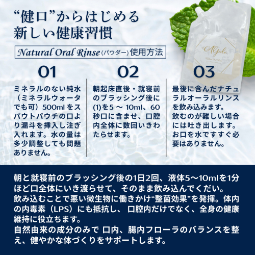 歯医者さんがつくった 無添加 オーラルリンス Alpdc (パウダータイプ) マウスウォッシュ 口臭 口腔 オーラル ケア 安心 安全 無着色 オーガニック 子ども おすすめ